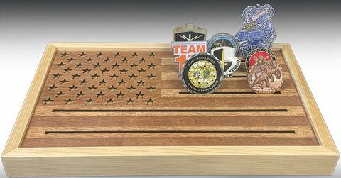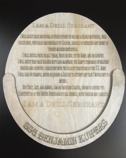 Frequently Asked Questions Q: What types of custom products do you offer? A: We specialize in laser-engraved and CNC-crafted custom military gifts including unit plaques, retirement shadow boxes, challenge coin displays, desk name plates, military insignia art, personalized awards, and custom wooden flags. Each piece is handcrafted to honor service members and veterans. Q: How long does it take to complete a custom order? A: Most custom orders take 7-14 business days for production, plus shipping time. Rush orders may be available for an additional fee depending on our current workload. Contact us for expedited service options. Q: Can you engrave unit logos and military insignia? A: Yes! We can engrave most military unit logos, insignia, and emblems. You'll need to provide high-quality artwork or we can help source official images. We ensure all military symbols are used respectfully and in accordance with regulations. Q: What materials do you work with? A: We work with premium hardwoods (including purpleheart), walnut, oak, maple, acrylic, leather, and various metals. Natural wood grain and color variations make each piece unique. Q: How does the ordering process work? A: Simply contact us with your project idea, provide any logos or text you'd like included, and we'll create a digital proof for your approval before production begins. Once you approve the design, we'll craft your custom piece. Q: Do you ship nationwide? A: Yes! We ship across the continental United States. Shipping costs and estimated delivery times are provided at checkout. International shipping may be available upon request. Q: What's your return policy for custom items? A: Due to the personalized nature of our products, custom items are non-returnable unless defective or we made an error. If you receive a defective item, contact us within 7 days of delivery with photos and we'll replace it or issue a refund. Q: Can I see my design before you make it? A: Absolutely! We provide a digital proof of your design for approval before we begin production. This ensures you're completely satisfied with the layout, text, and overall design. Q: Do you offer military discounts? A: Yes! As a veteran-owned business, we're proud to offer discounts to active duty military, veterans, and first responders. Contact us for details. Q: What information do I need to provide for a custom order? A: Please provide: the text you want engraved (names, dates, ranks, etc.), any logos or images, preferred size and material, and any specific design preferences. The more details you provide, the better we can bring your vision to life. Q: Can you create bulk orders for unit ceremonies? A: Yes! We handle bulk orders for retirements, change of command ceremonies, and unit events. Contact us for volume pricing and lead times. Q: How do I care for my engraved wood piece? A: Dust with a soft, dry cloth. Avoid direct sunlight and excessive moisture. For wooden items, you can occasionally apply furniture polish or wood conditioner to maintain the finish.